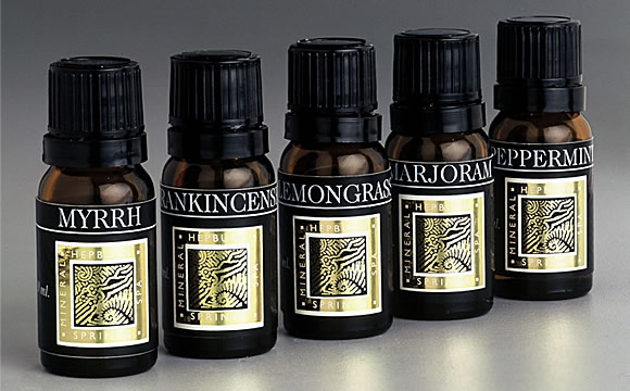 The logo and packaging for a range of aroma therapy oils reflects the sense of luxury and unique natural setting of the spa.